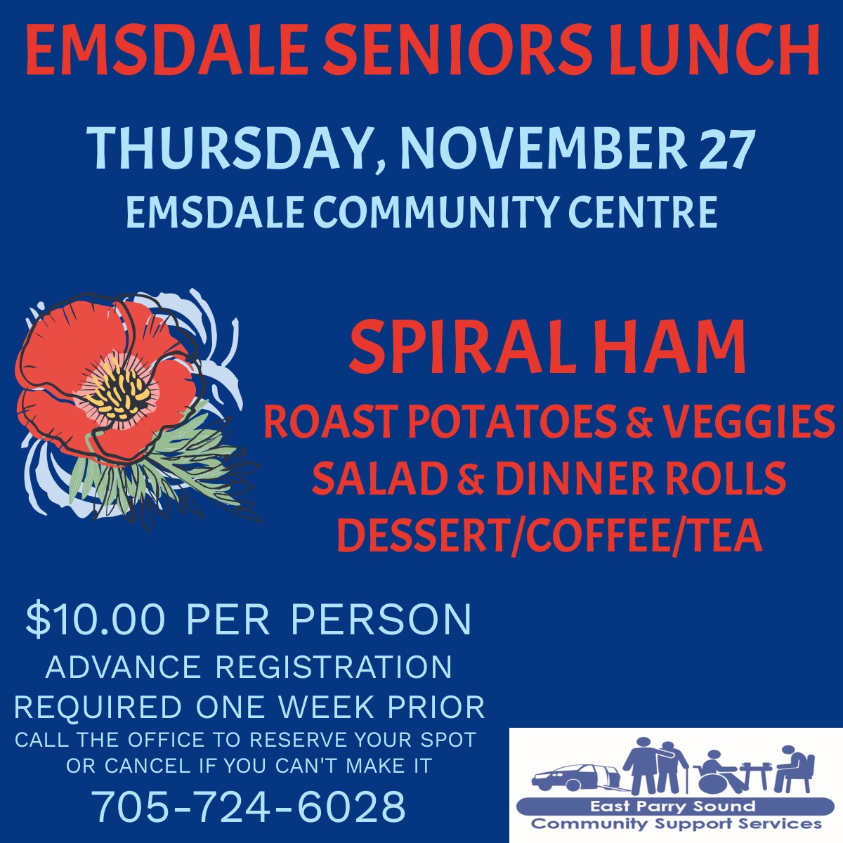 Call the East Parry Sound Community Support Services Office to book your spot at 705-724-6028.